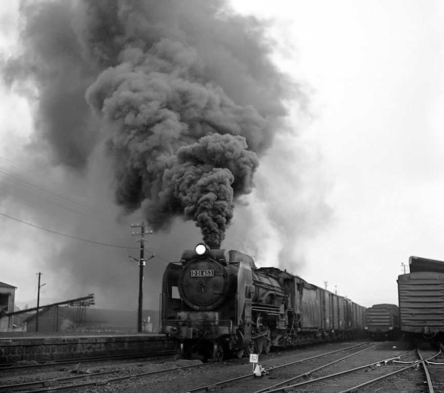 それでも朝の小林駅に向かいますと、停車中の貨物列車の横に、上り客車列車を牽引してD51が到着しました。