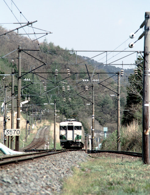 目的の 特急あいづ がやって来るので、沿線に咲いている桜を入れてみたのですが、通過時間には丁度そこだけが日陰になってしまいました。